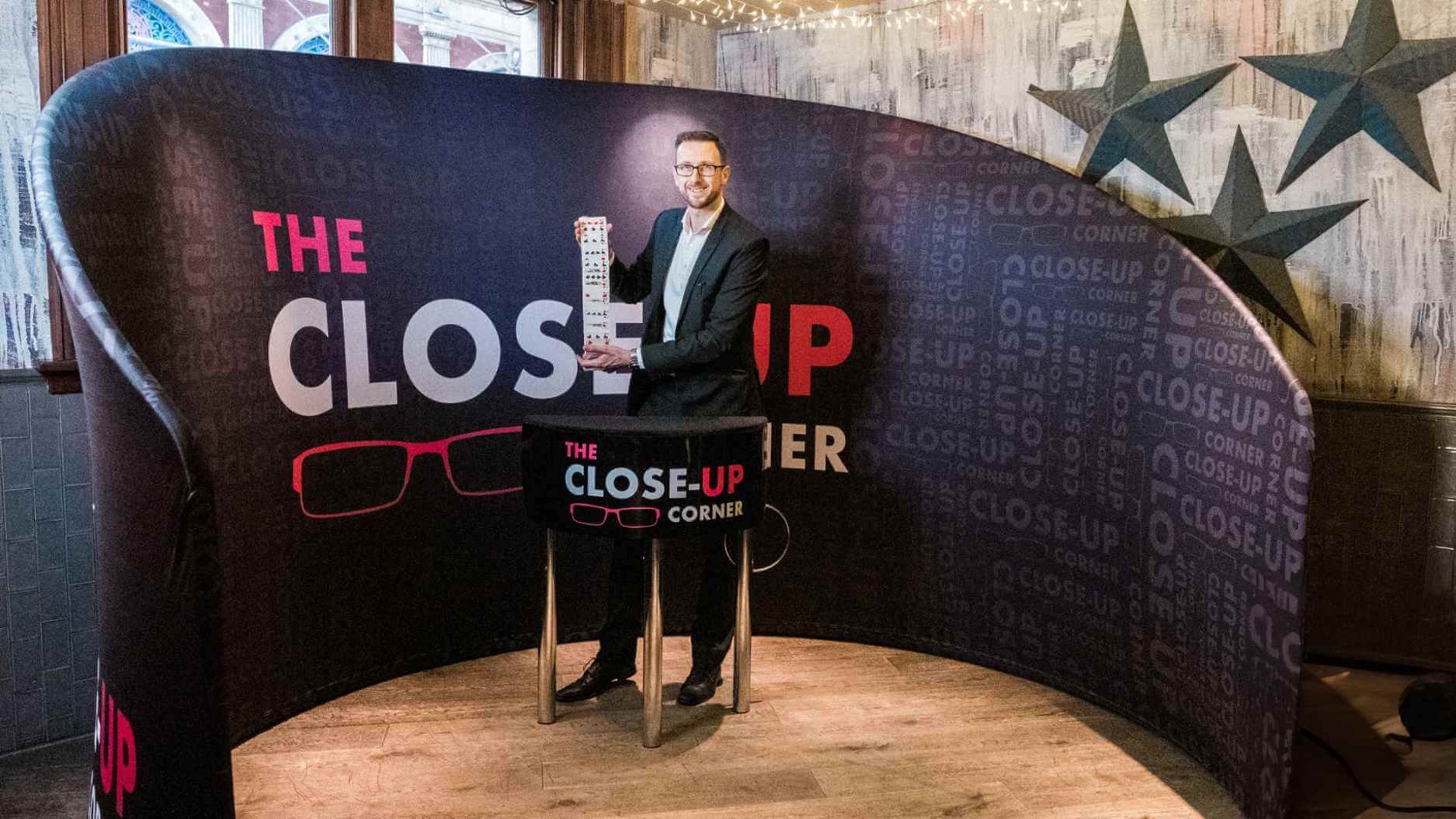 The Close-Up Corner is more than just magic! Complete with an eye-catching backdrop, LED lights, and its own Reaction Cam, it's the ultimate corporate entertainment.